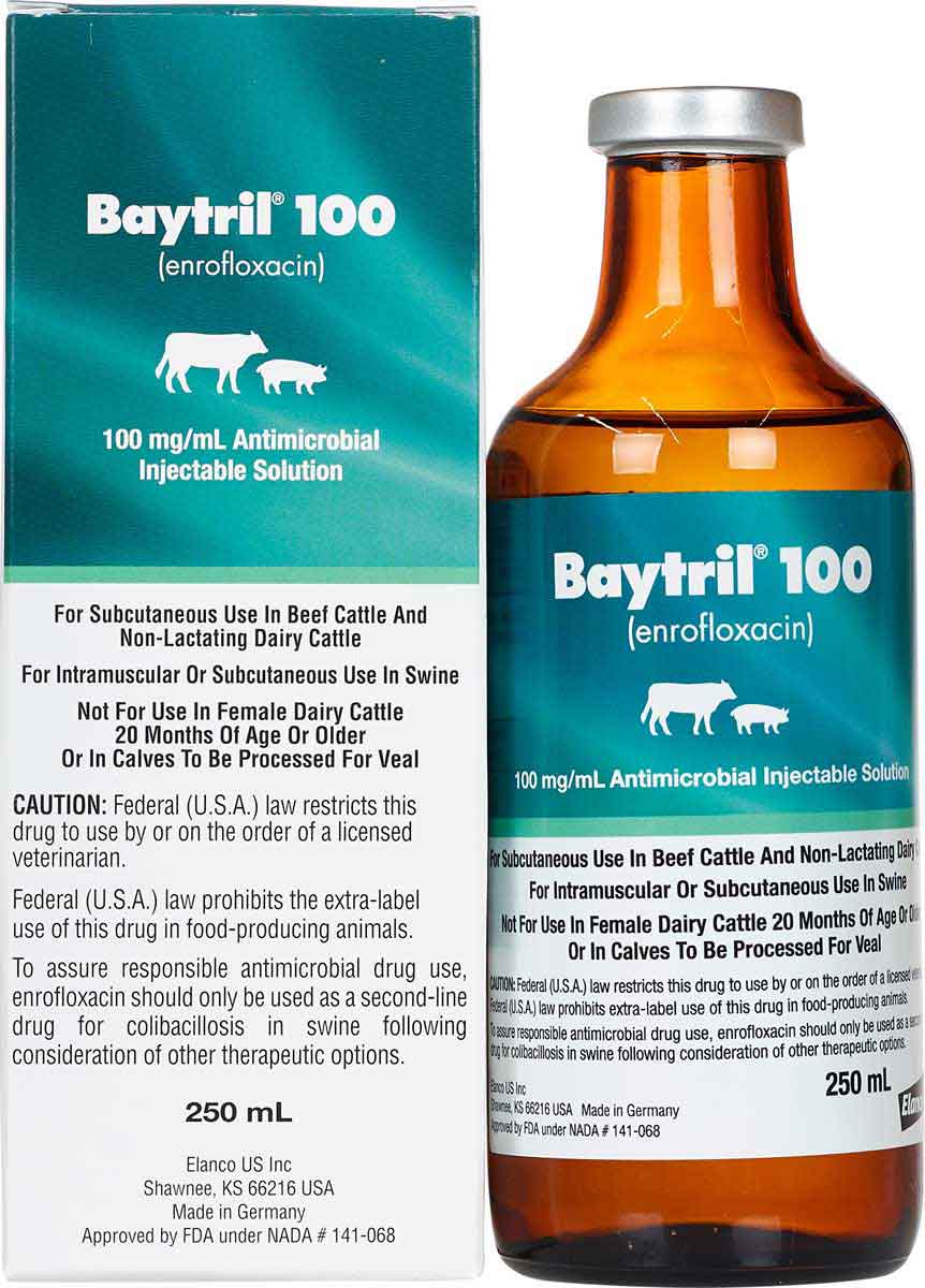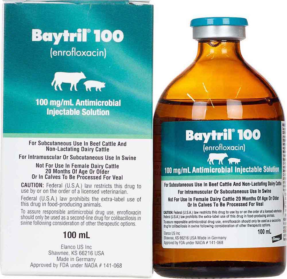 Baytril 100 Antimicrobial For Cattle And Swine Bayer Safe Pharmacy Swine Livestock Rx Farm